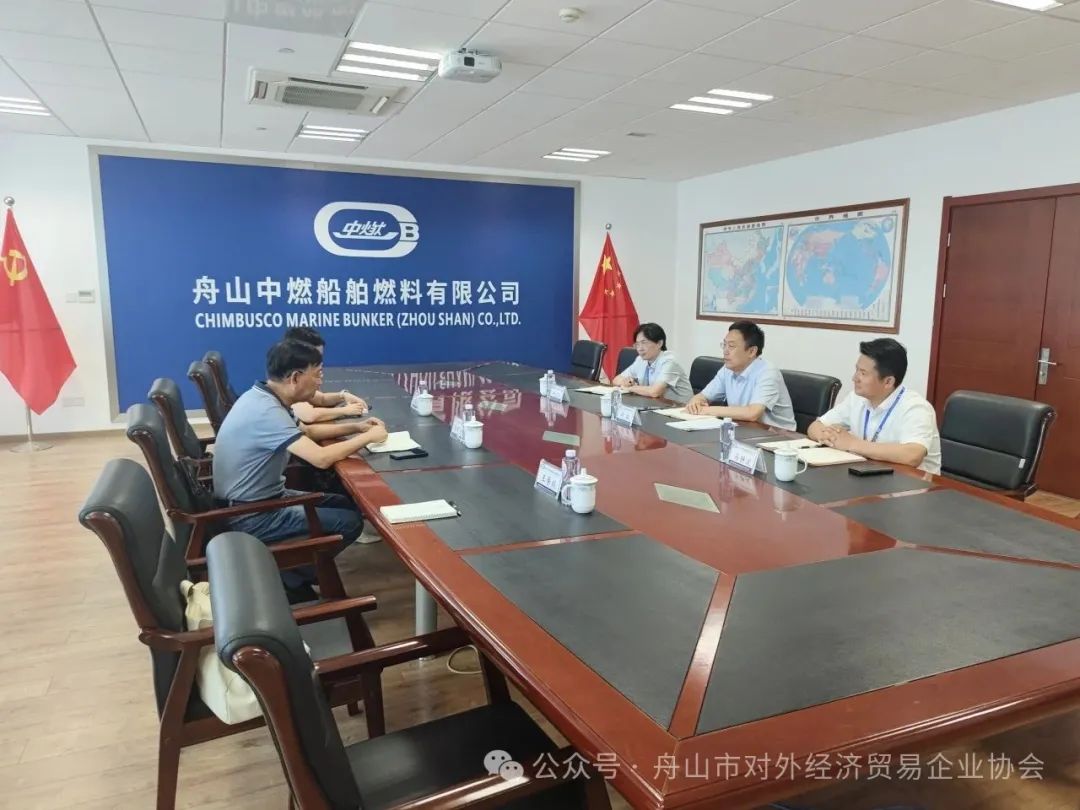 8月19日,協(xié)會常務副會長兼秘書長陳國強帶隊走訪理事單位舟山中燃船舶燃料有限公司,開展實地調(diào)研與座談交流。秘書處工作人員一同參加調(diào)研。